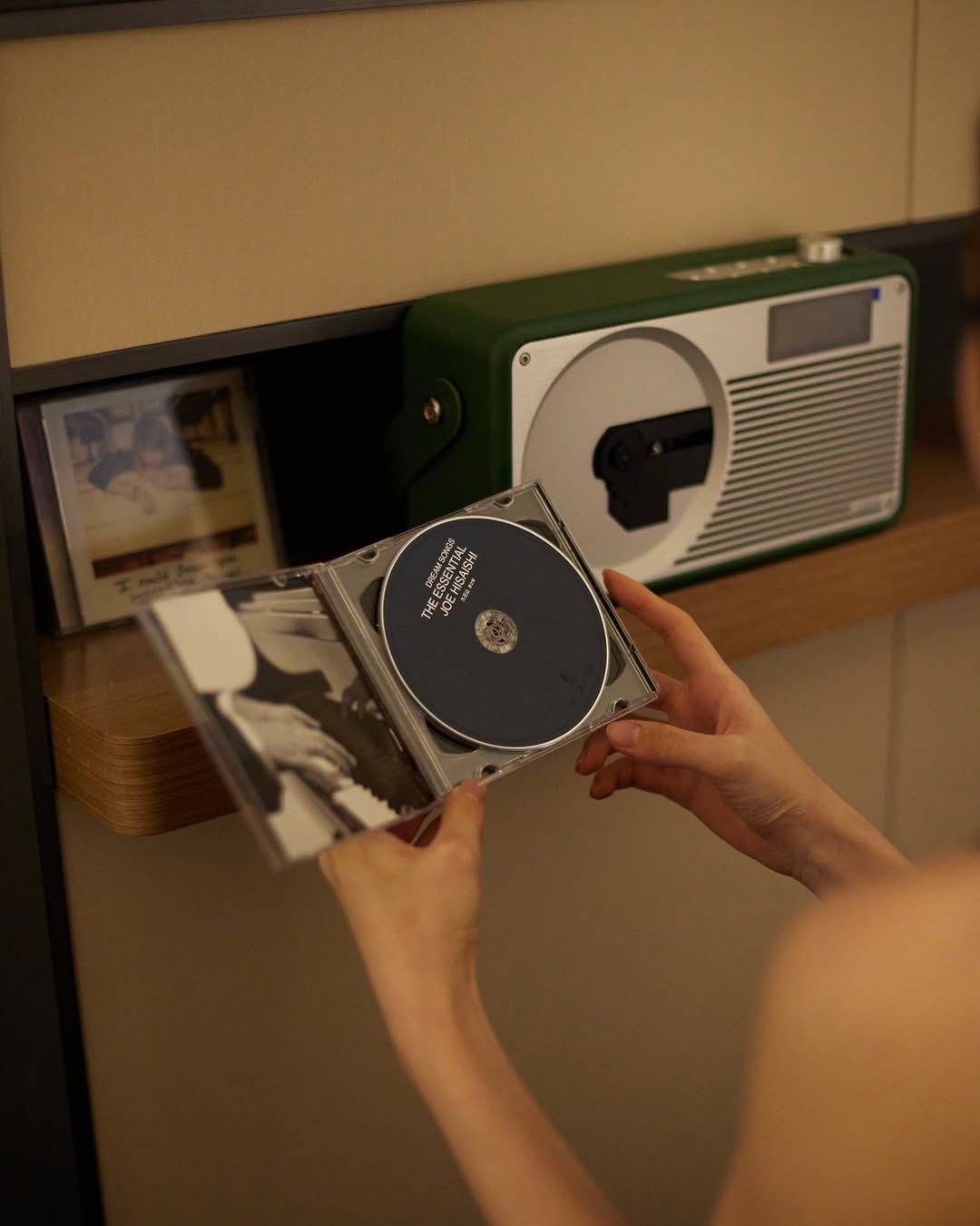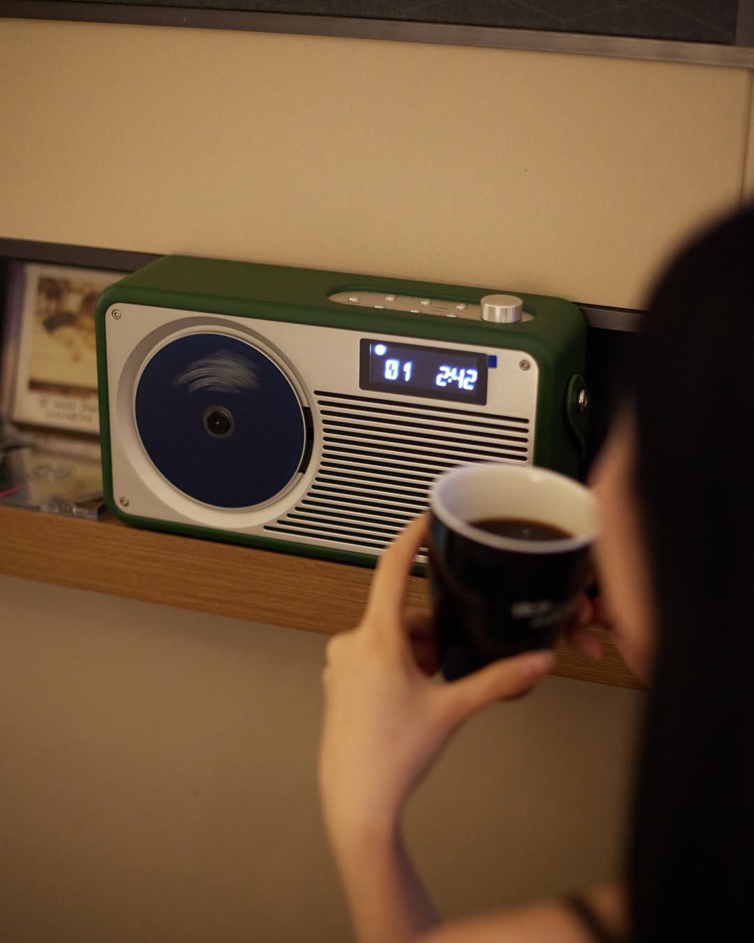単なる縦型 CD プレーヤーではなく、Bluetooth スピーカーと FM ラジオを 1 つのエレガントな形状にシームレスに組み合わせています。