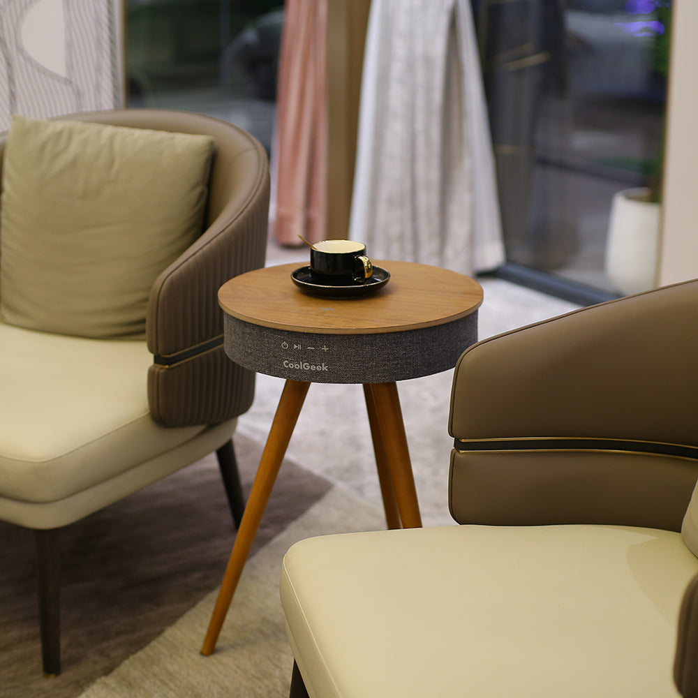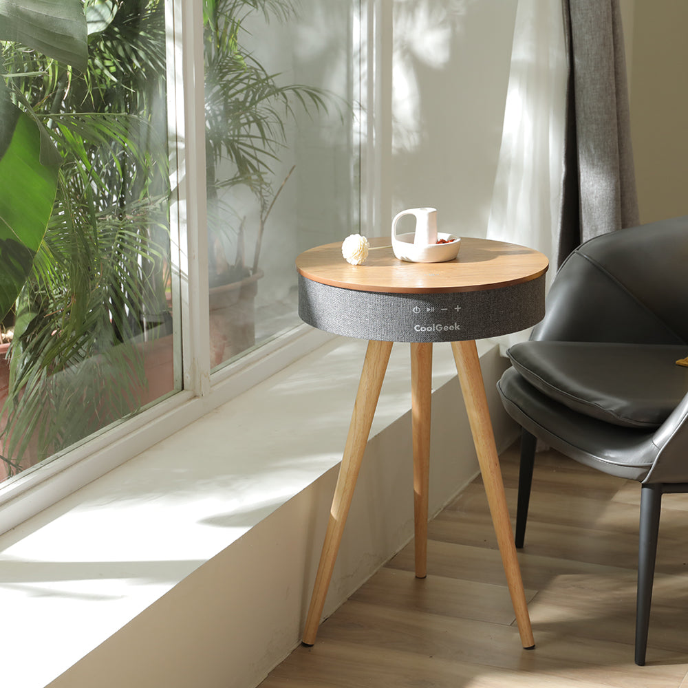 Crafted with natural wood and a stable triangular frame, the CoolGeek R1 seamlessly blends into your home like a piece of designer furniture. Its minimalist form turns sound into part of the scenery.